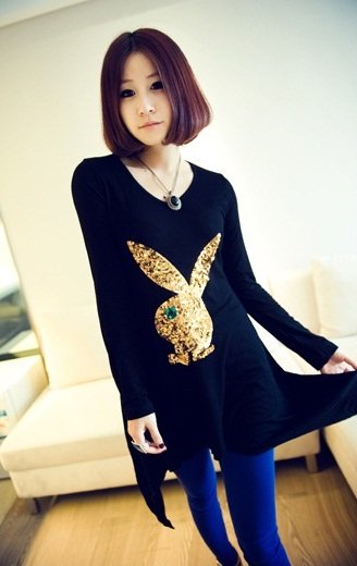 ❤Alina潮流服飾館 ❤兔子亮片T恤 金色亮片兔兔長T-黑色